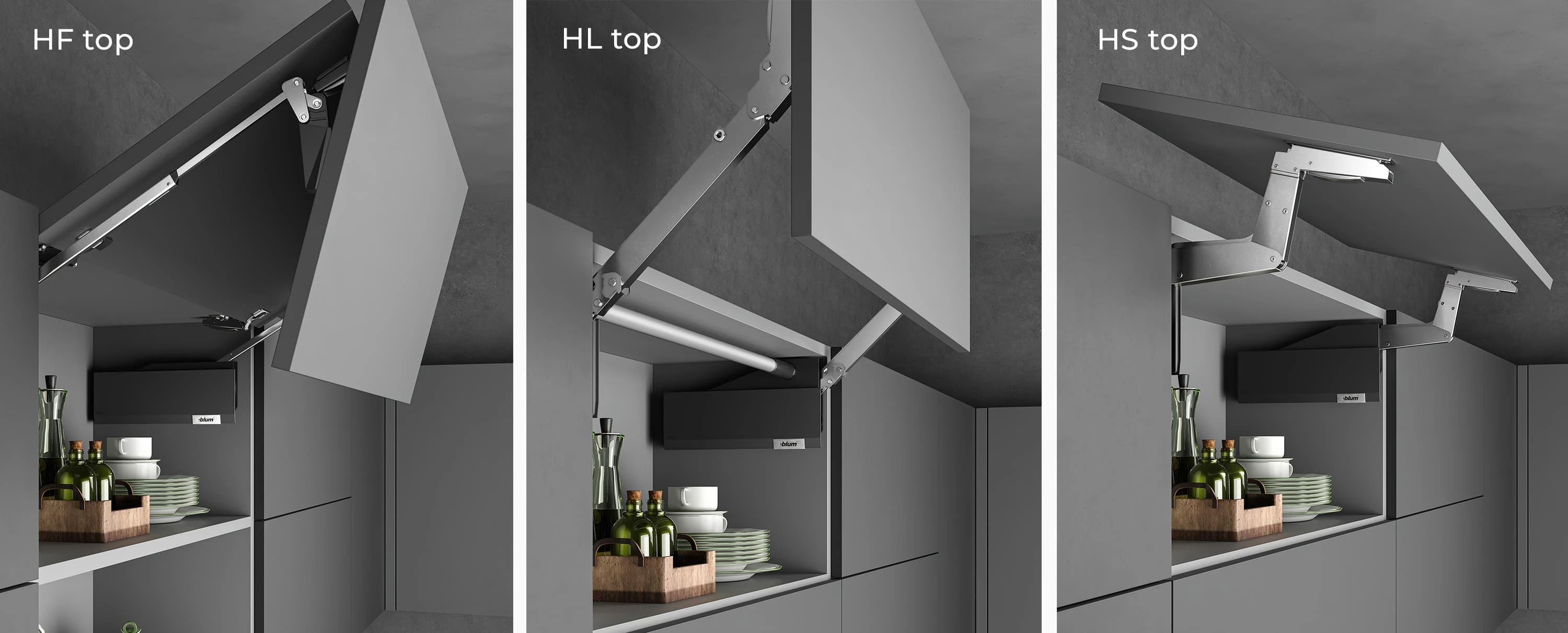 Теперь вся кухонная и корпусная мебель «ЗОВ» комплектуется обновленными подъемными механизмами AVENTOS HF, HL и HS от австрийского производителя BLUM в версии top!