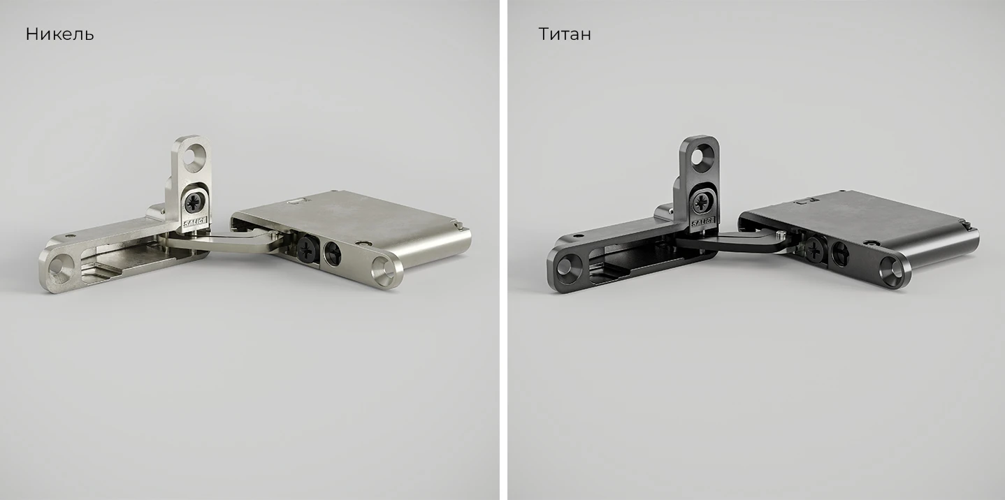 Петля AIR доступна в 2 цветах (Титан и Никель) и используется только совместно с фасадным алюминиевым профилем А-6.