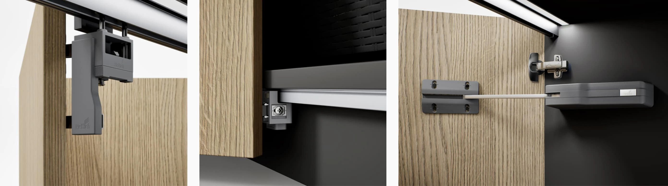 Ранее, в зависимости от направления открывания фасадов, механизмы комфорта имели левую и правую версии. В обновленном варианте WingLine L механизмы Push to move и Pull to move Silent стали универсальными.