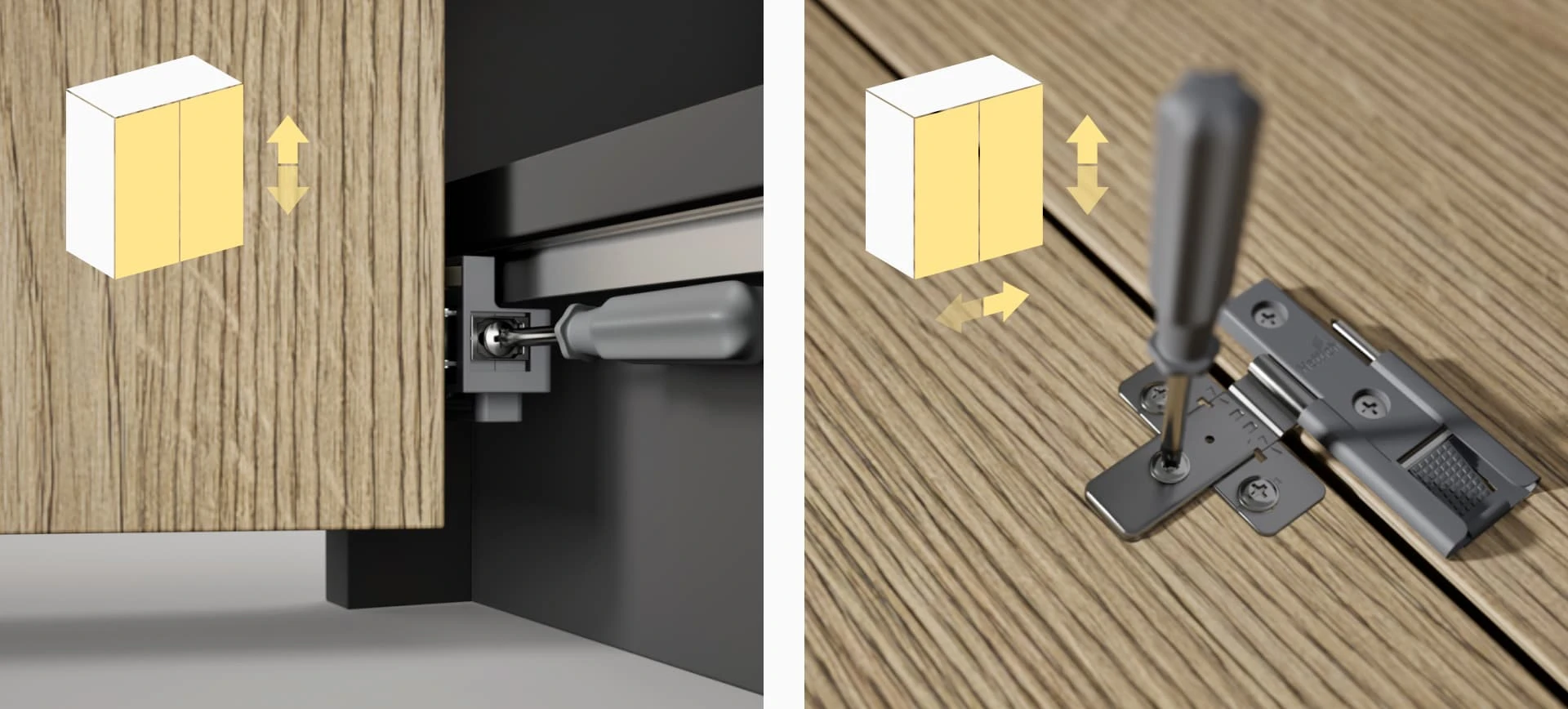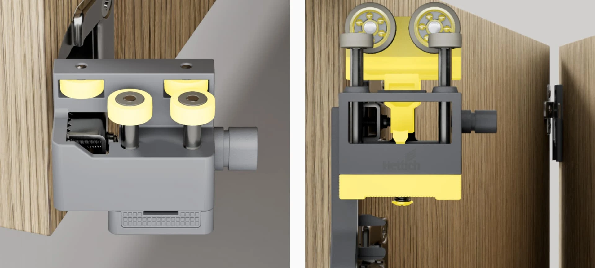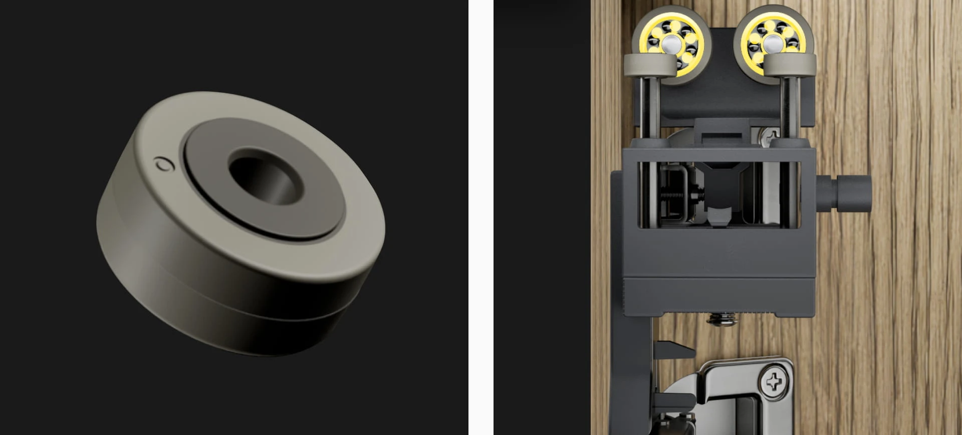 Помимо регулировки по глубине, для идеальной работы направляющей системы внедрена возможность дополнительной регулировки створок по высоте в направляющем элементе. Кроме этого, обновленные средние петли с функцией эксцентриковой регулировки зазора между створками, а также высоты створок с помощью евровинтов обеспечивают идеальный внешний вид мебели.